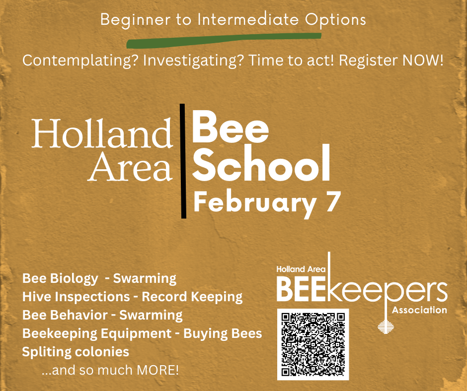 As a special bonus, with paid registration to Holland Bee School, you will also receive a coupon code for FREE registration to the 2/22/25 Winter Virtual Conference hosted by the Sustainable Beekeeping Guild of Michigan (SBGMI), a $55 value.